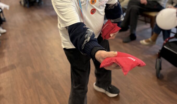 A care floor resident in a wheelchair never wants to do the games because he feels different but today the other residents insisted and encouraged him and he did it! Took a lot of courage but that was very fun and good spirit