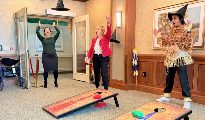 This morning all of our residents showed up bright and early to get their stretches in before the games started! We had lots of smiles laughs, and even some back massages before we threw down the yellow brick road hoping to land a shot for the win! The residents showed great courage as they played, and ROARED with cheers just like a lion would!