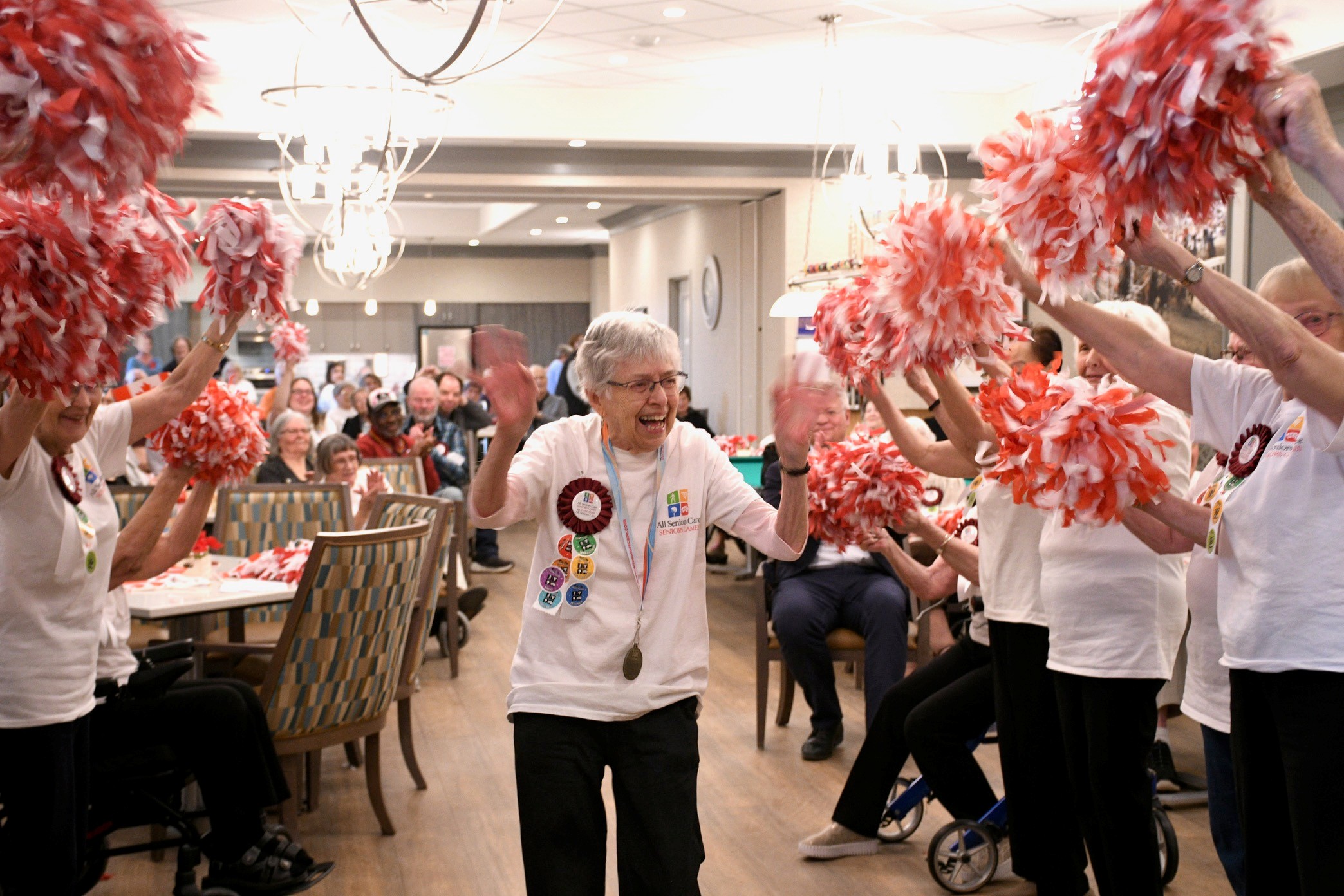In the midst of the action, PSW Rowina sparked an impromptu dance party in the Memory Care community while Jeopardy preparations were underway — a joyful reminder that the Games are just as much about fun as they are about competition.