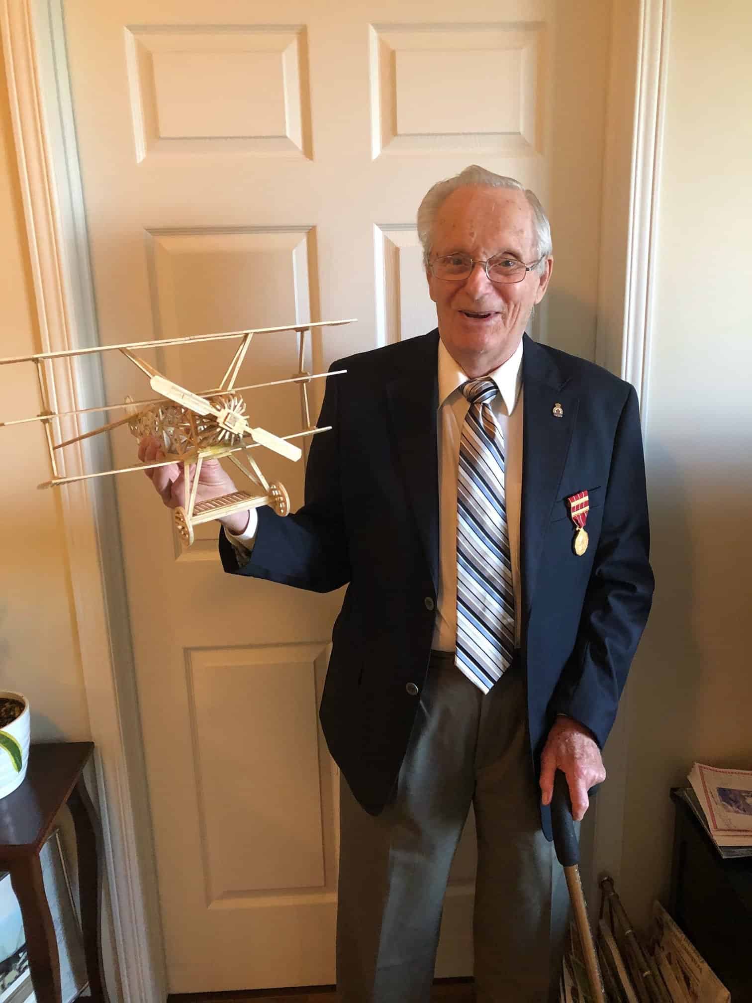Monsieur Gilles Cormier, a été classé adjudant maître et il a servi pendant 35 ans. St-Louis au Missouri, au Nouveau-Brunswick, au Québec et à Ottawa. Il a récité le poème Au Champ d’honneur. Il a également construit une maquette d’avion en bois, l’un de ses passe-temps favoris pendant la pandémie.