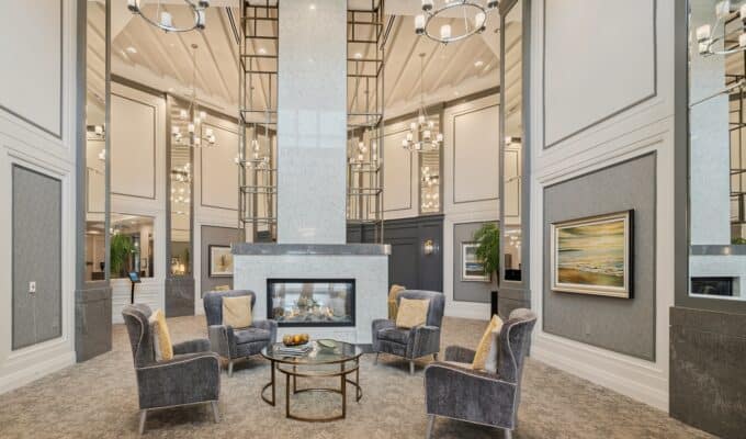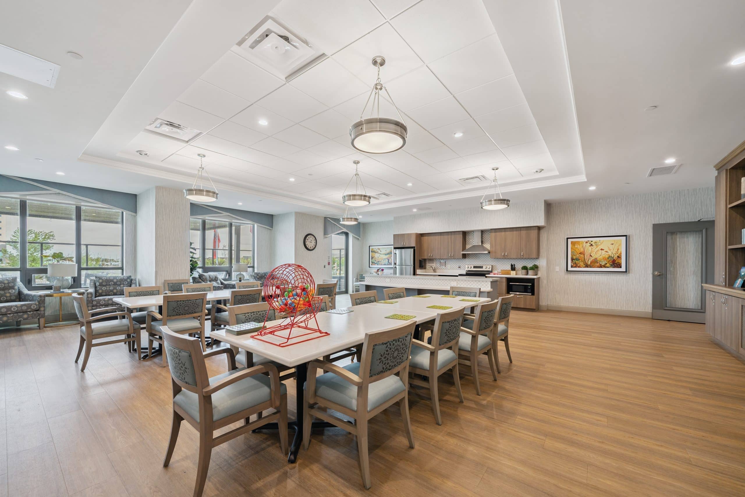 Joined by an expansive lobby, our welcoming common spaces offer well-appointed amenities to inspire intimate conversations, fun, fitness, relaxation, and fine dining.