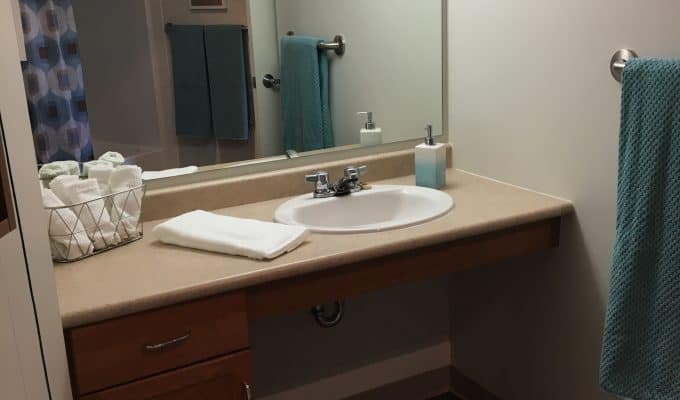 - Large private bathrooms that are wheelchair, walker & scooter accessible