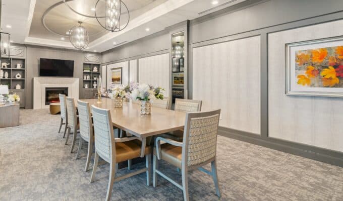Joined by an expansive lobby, our welcoming common spaces offer well-appointed amenities to inspire intimate conversations, fun, fitness, relaxation, and fine dining.