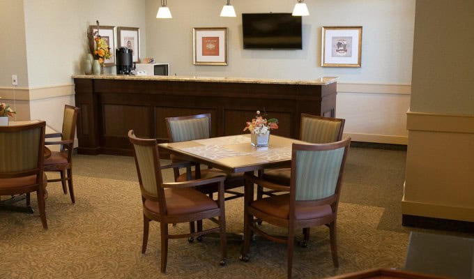 - Multi-purpose rooms such as a themed diner & old country porch for memory care residents