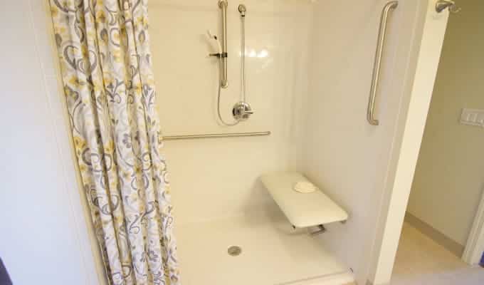 - Large private bathrooms that are wheelchair, walker & scooter accessible
